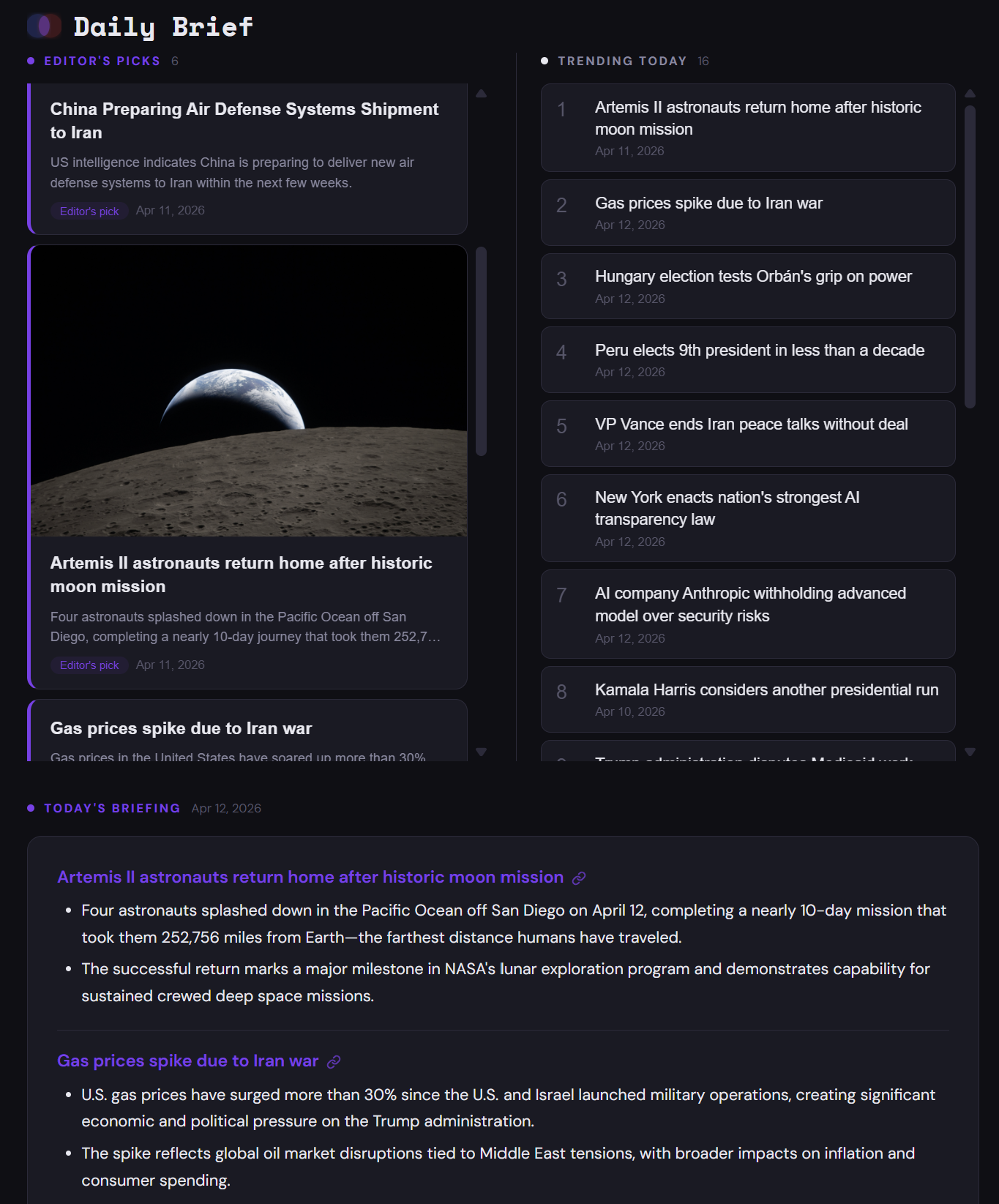 Thousands of stories built from 100+ linked sources, with trending topics curated to what matters to you.
