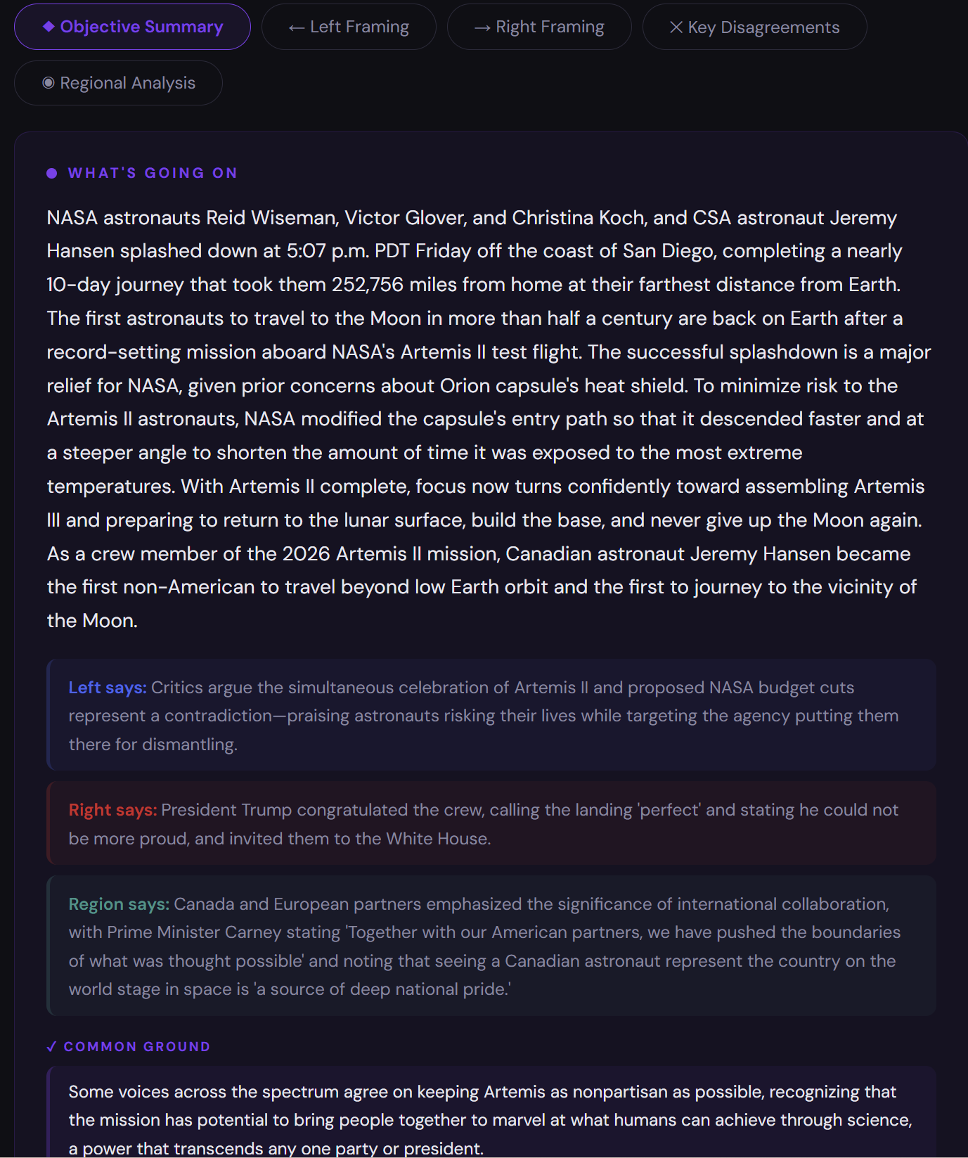 Fight the propaganda machine. See what's trending across the news landscape all in one place, pulled from multiple sources on both sides. We don't just report the news — we give you the interactive tools to understand it.